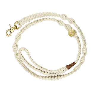 The distinctive knot design using soft cotton cord, finished with luxe brass hardware makes this Macramé Collection of Dog Collars and Leads unique to the Sebastian Says label.
